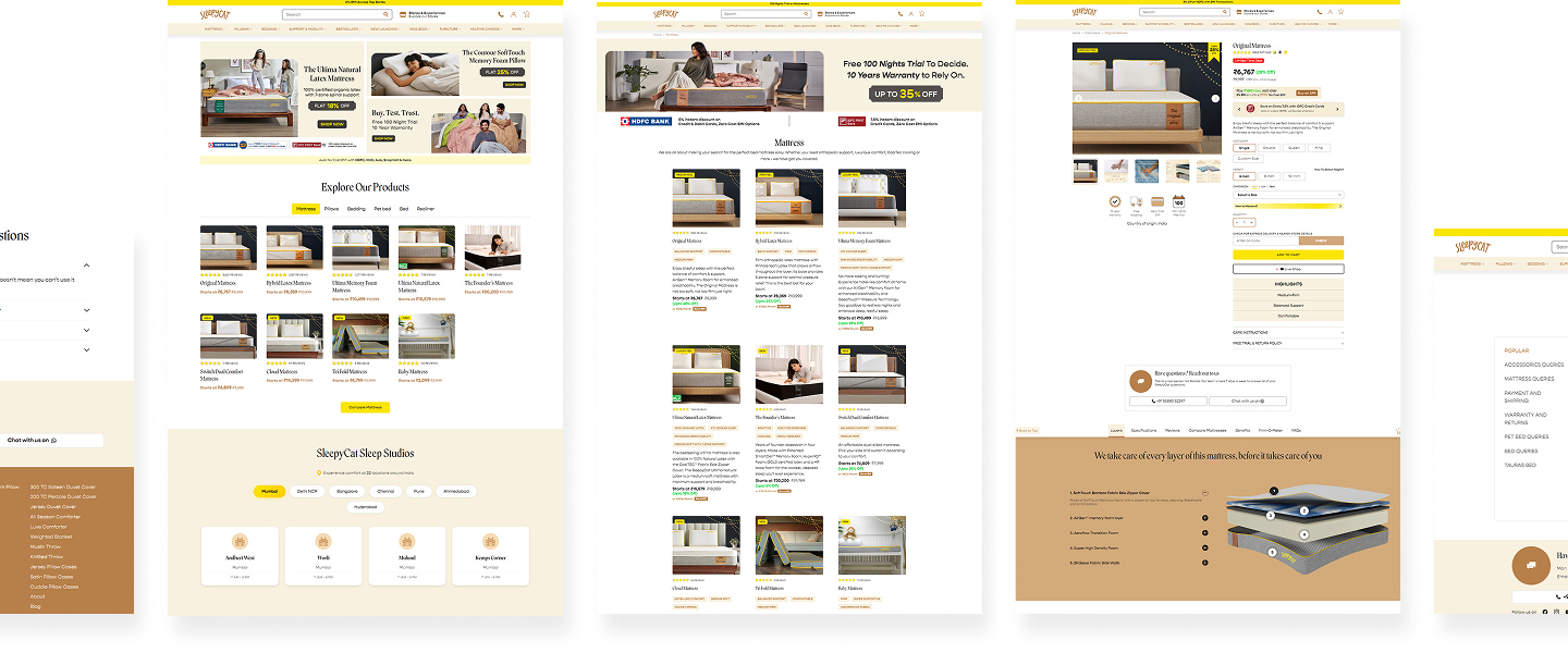 SleepyCat is a leading Indian D2C sleep solutions brand offering a wide range of products, including mattresses, pillows, bedding, and accessories. Moreover, their sleep solutions come with a strong promise: 100-night trial, 10-year warranty, and direct-to-door delivery across India. Their entire model is built on trust, transparency, and a seamless customer experience.