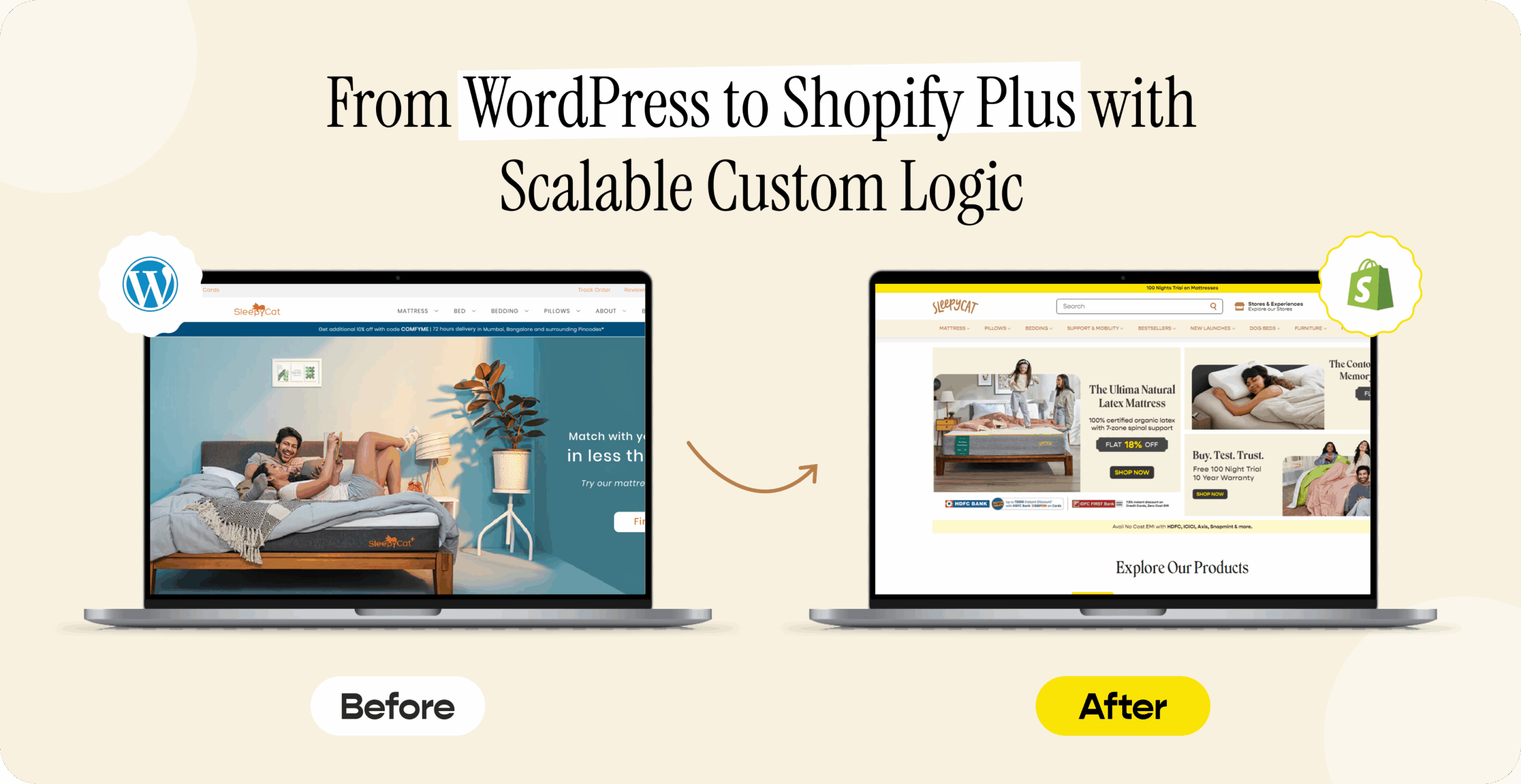 Behind their sleep storefront, there’s a complex, ageing WordPress + WooCommerce system that they have heavily customised. So, as SleepyCat scaled, the customised system started to face troubles like slow performance, maintenance overhead, and constraints in evolving their unique product logic (bundles, add-ons, variant rules).